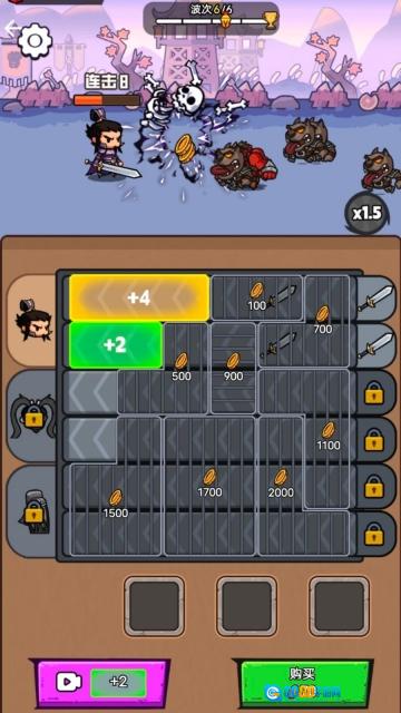 1. 角色会自动发起战斗攻击敌人,玩家可消耗金币购买武器并放置到传送带上,这些武器能对英雄的攻击起到强化作用。