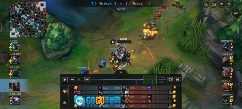 再加上布里茨的Q(1)技能“机械飞爪”这类控制技能,兰博完成战场分割后,他们俩能迅速锁定目标并实现单点击杀,从而为团战创造优势。