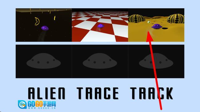 进入后,我们在关卡选择界面,点击箭头所指的场景,进入对应的外星关卡,操控飞碟进行探索。