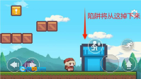 3、不可以直接跳上第一个水管,能够借助二段跳返回触发陷阱后再通过。