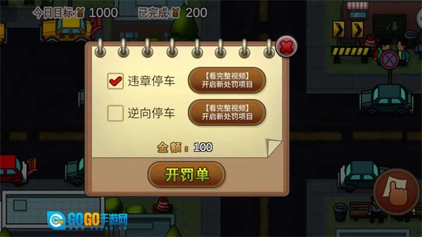 1、游戏玩法非常简单,只需找出场景里违章停放的车辆,再依据违规情况给它们贴上罚单,就能赚取收益。