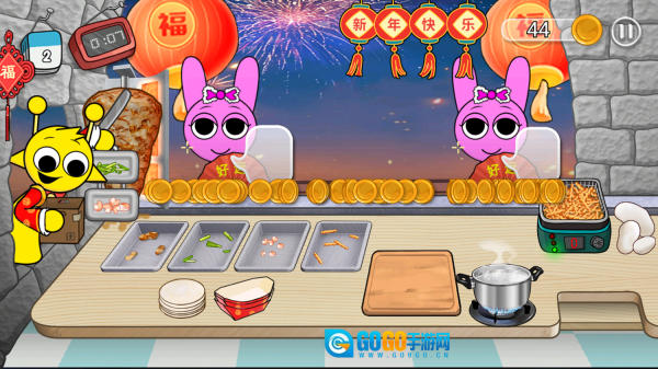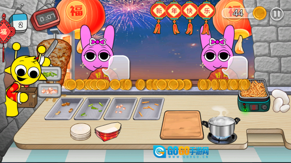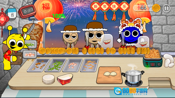 3、要高效包制饺子来满足顾客需求,在规定时间内完成订单任务,通过赚取的金币进行升级,打造出独具特色的新年主题厨房。