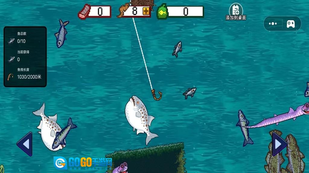 2、钓获的鱼会累计到总数里,达成目标就能领取奖励,这些奖励可用于升级鱼竿和鱼线,进而解锁更深的海域。