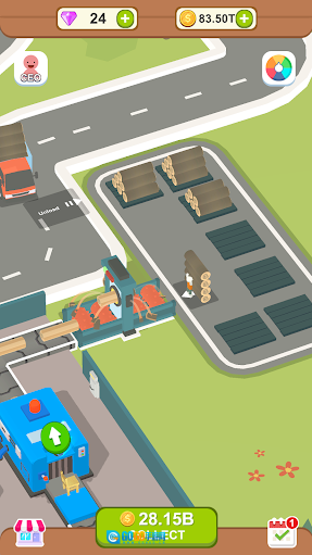 这是一款相当休闲有趣的模拟经营游戏,解锁伐木场后会触发一连串事件,你能看到挖掘机在森林周边挖掘水道,让原木顺着水流漂送下去。