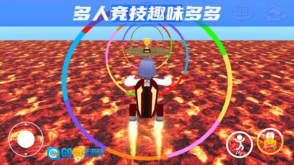 1、游戏场景围绕熔岩世界构建,熔岩的蔓延速度会随时间推移不断加快,玩家必须持续移动来躲避被吞噬的风险,场景中还会随机生成临时的落脚区域。