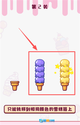 2. 随着关卡不断深入,你会碰到越来越多造型别具一格的雪糕种类,从经典甜筒到创意蛋糕雪糕,各种各样的都有。