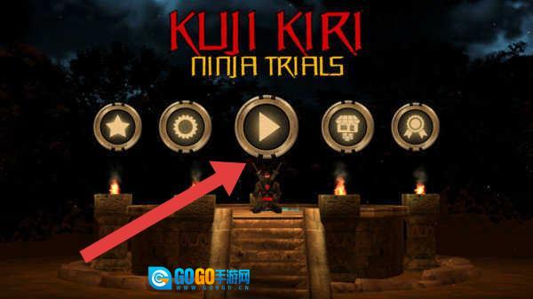 1、在主界面找到播放按钮(红箭头所指位置),点击它即可进入《Kuji-Kiri-Ninja-Trials》,开启忍者试炼之旅。