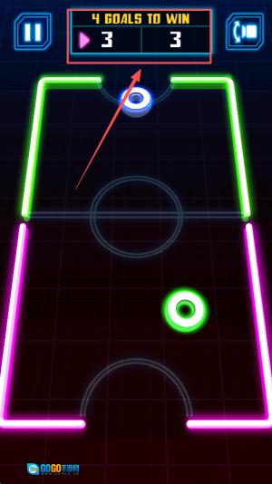 4、比赛开始:界面显示“Y GOALS TO WIN 3 3”,需拖动球拍完成射门以获取分数。