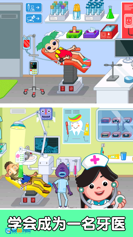 1、安装并进入游戏后,映入眼帘的是整座医院大楼,里面划分了不同科室供你挑选。