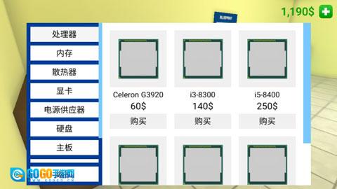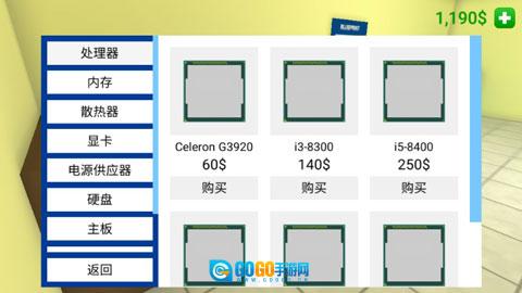 2、游戏内界面如图所示,在开始游戏前需要选择想要配置的主机配件,比如cpu、主板之类的。