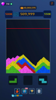 1. 把俄罗斯方块的玩法和沙粒物理模拟相融合,方块掉落之后会碎裂成沙粒,让消除玩法拥有全新的视觉感受与操作体验。