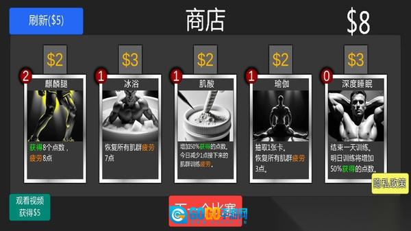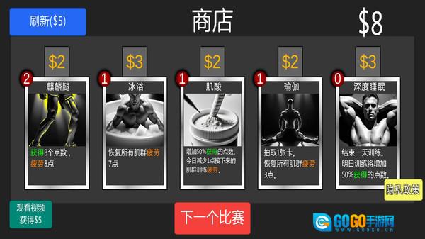 2、通过获取金币来兑换蛋白粉、运动护具之类的物品,对健身房的设施进行升级改造,以此提高训练的效率;