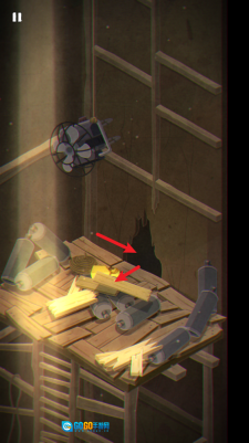 7、登上平台后,取下这里的两块木板,点击洞口就能进入下一个场景。