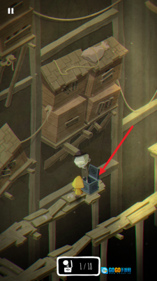 9、接下来走到这里的木板位置,把旁边的笼子关上,这样就能顺利到达下一层了。