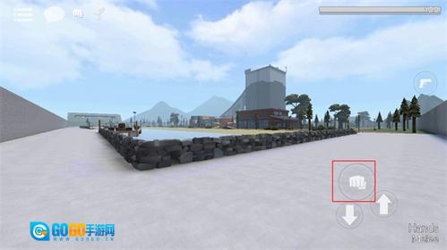 8、靠近建筑物,会出现图示按钮,长按可以开门;