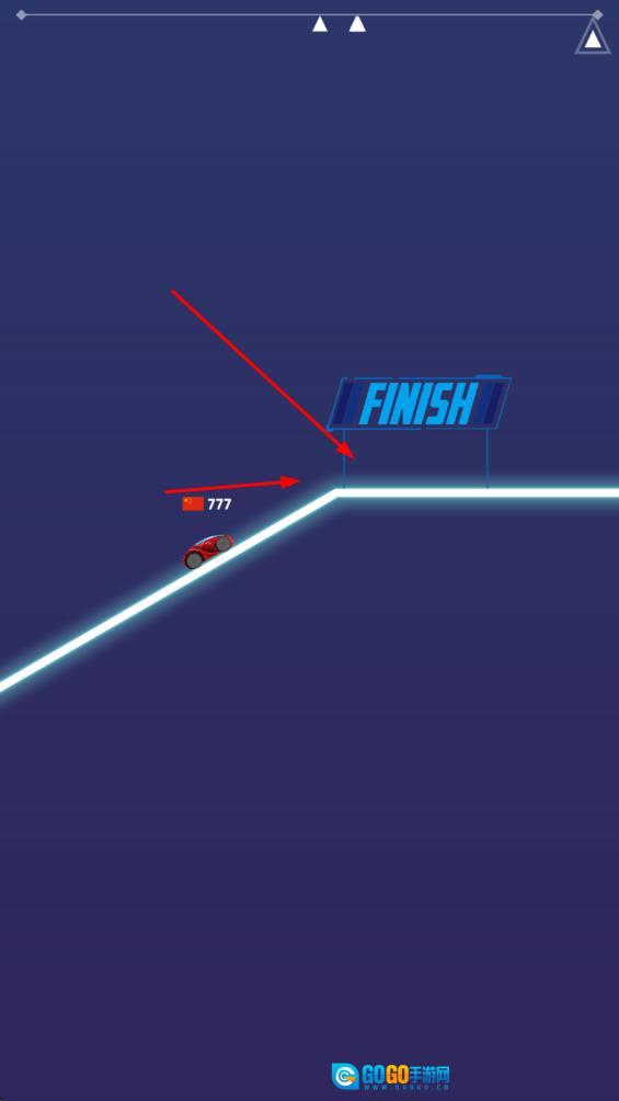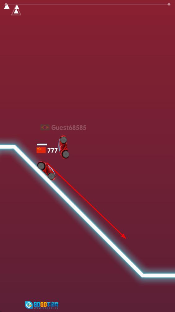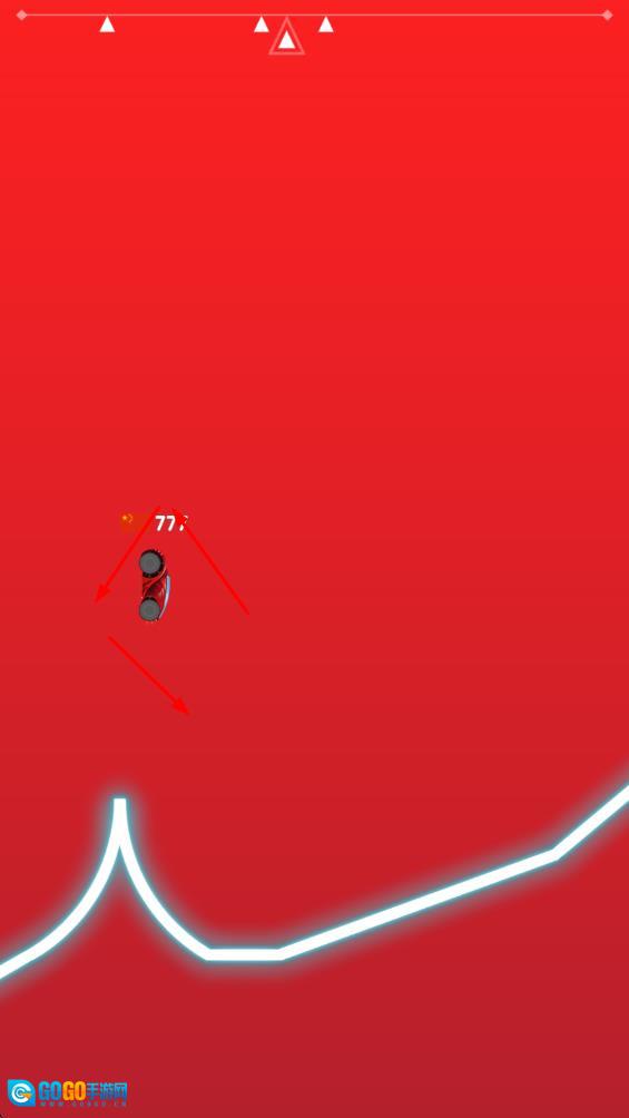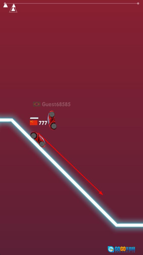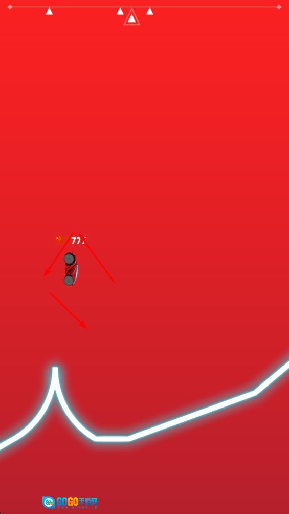 1、驾驶红色赛车在赛道上驰骋,借助赛道的坡度与弯道,这是取得优势的核心操作。