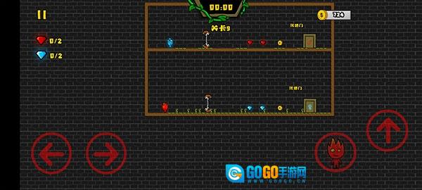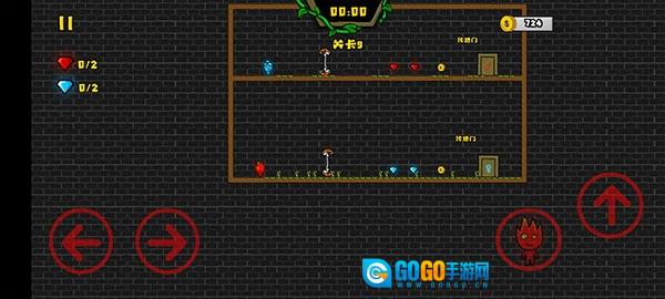 3、不同颜色的角色仅能收集对应颜色的宝石,并且只能进入对应颜色的门。