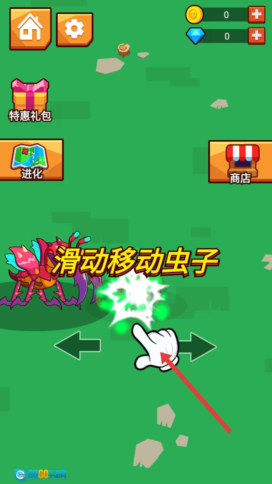 2、进入操作指引界面后,按照提示滑动屏幕来操控虫子移动,以此熟悉基础操作方法,为后续的吞噬战斗做好准备。