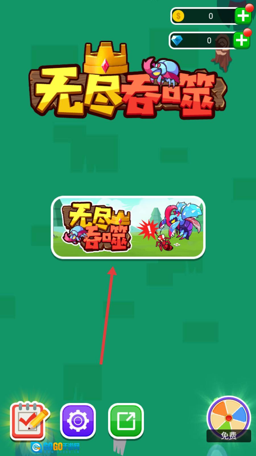 1、进入无尽吞噬界面,映入眼帘的是游戏名称与宣传图,玩家点击中间那个带有游戏画面的按钮,即可开启吞噬冒险之旅,踏入这个佳作构筑的世界。