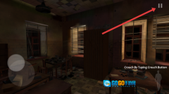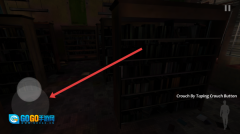 2、在游戏里,拖动左侧的虚拟摇杆,就能操控角色在图书馆内移动;按照提示“Crouch-By-Taping-Crouch-Button”操作,角色可以蹲下进行躲避。