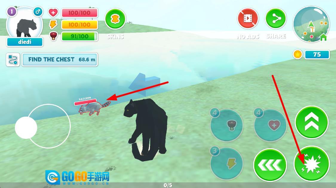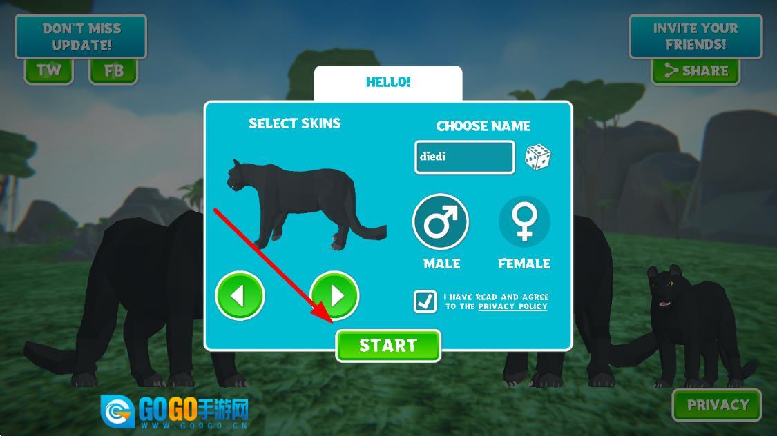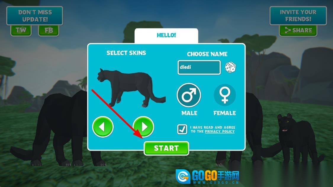 进入游戏后,你将操控黑豹在3D森林场景里奔跑捕猎,需通过获取食物来维持生存,并应对野外的各种危机。
