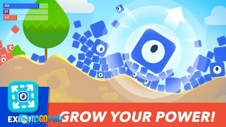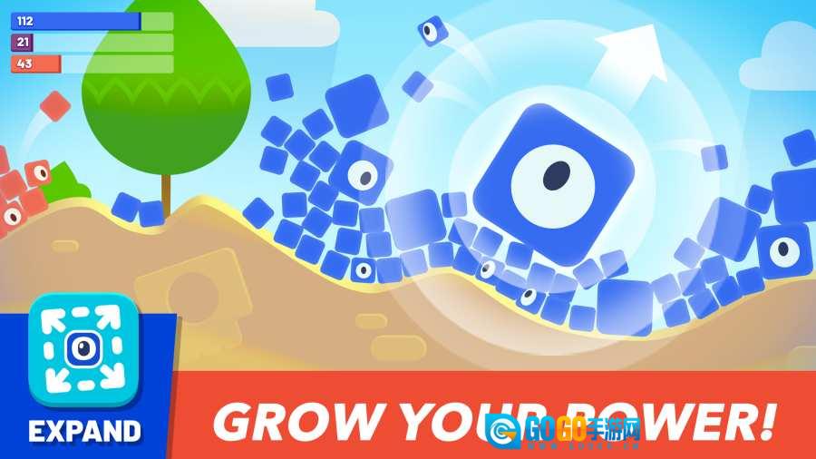 1、游戏开始时你体型很小,需要不断吞噬比自己更小的方块来逐步变大。