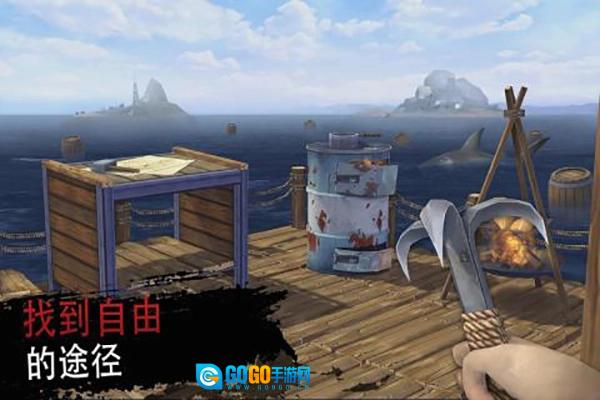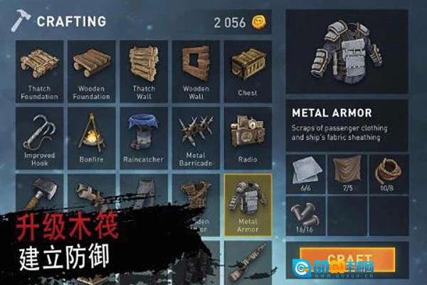 2、获取物资,制造武器,加强木筏,或建造堡垒;