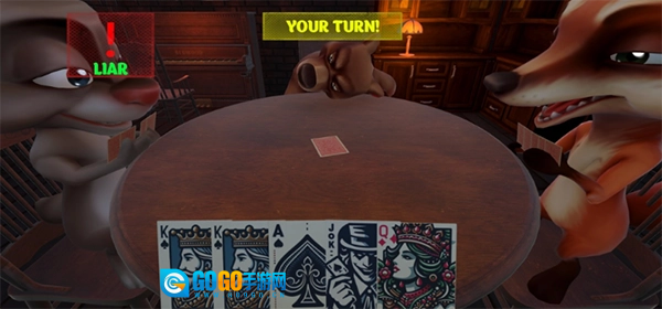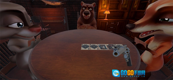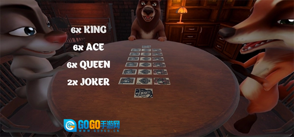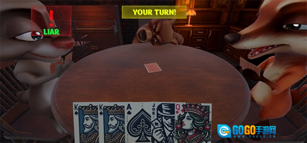 点击PLAY按钮即可进入游戏,你会化身为一个角色(说不定是猪头形象),在酒馆里和三位伙伴一起玩牌(现阶段暂不支持联机功能)。玩法规则很简单,有点像某国杀里于吉的技能机制,也和东北的唬牌玩法类似。你的任务就是成为最终的胜利者,成功存活下来!