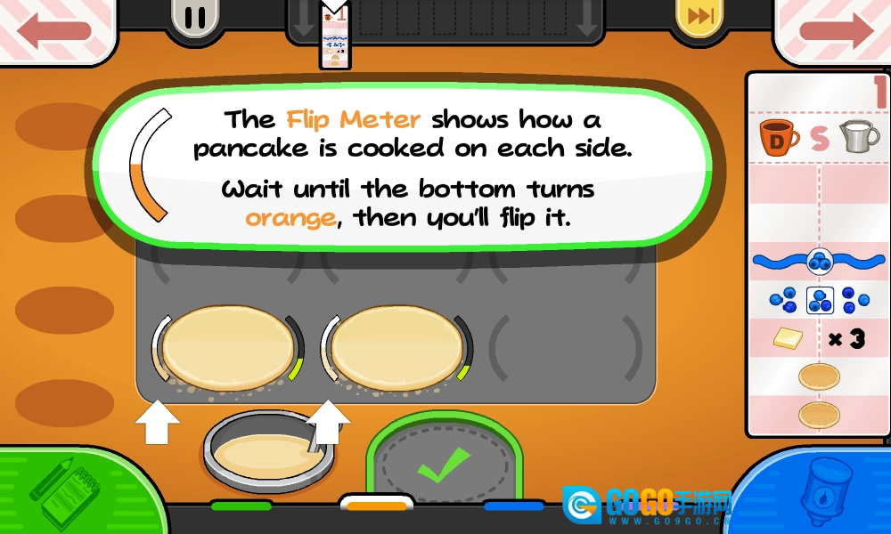 2、认真记录顾客的各项需求,依据他们的口味偏好制作煎饼,把控好火候与时间,同时留意大厅里的新顾客,营造出真实的经营氛围。