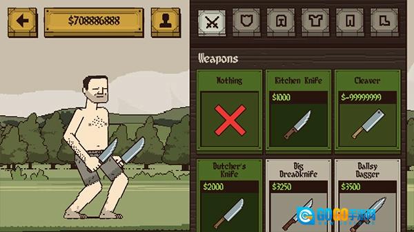 这该死的混球采用1对1的擂台对决模式,胜利条件简单直接得很——把对手彻底揍趴下!随着关卡推进,你能用战斗赢来的金币解锁各种稀奇古怪的武器,从一开始的小匕首逐步升级到巨型锤子、电锯,甚至还有神秘的法器,战斗场面也从街头斗殴变成了神仙打架。中文本地化的加入让操作提示和剧情对话更贴近生活,让这场荒诞的格斗更加爽快过瘾!