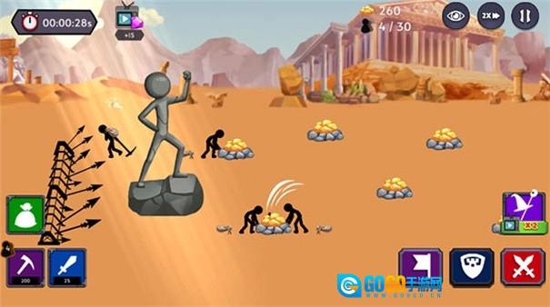 2、开局时优先召唤矿工单位,安排他们前往矿区进行高效的金币采集,加快经济收入的积累速度,从而为后续的兵力部署奠定稳固的基础。