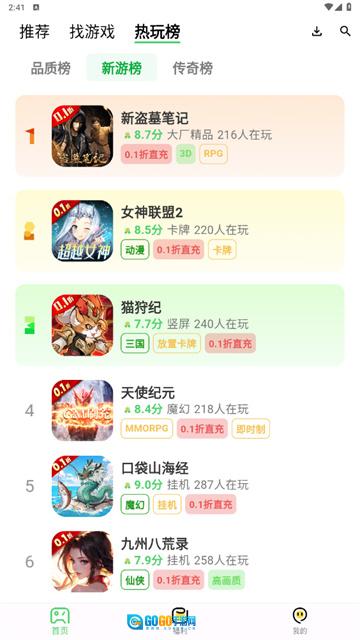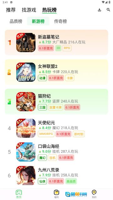 6、热玩榜”下设品质榜、新游榜与传奇榜,你可按需选择;畅快游玩游戏的同时,还能免费领取海量礼包资源。