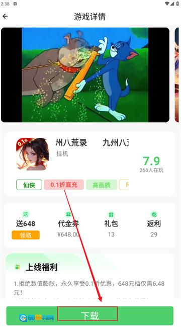 4、点击你想玩的目标游戏,例如“九州八荒录”,然后点击底部的“”按钮。