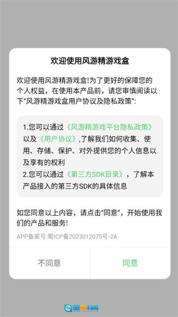 1、在本平台完成风游精的安装、注册与登录操作,并阅读相关的用户协议及隐私政策。