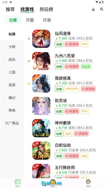 3、进入“找游戏”板块,这里汇聚了开服、开测等各类资源,分类体系十分详尽。