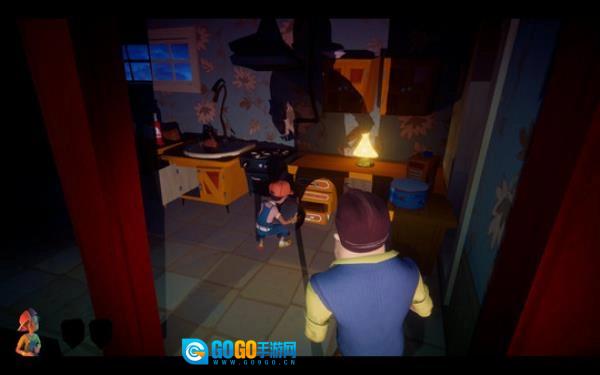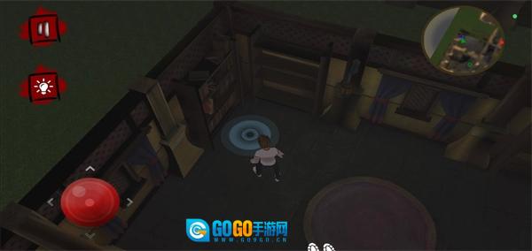 1、进入游戏后先观察左上角的小地图,其中红色光点显示的是邻居的实时位置,要借助阴影区域灵活移动、巧妙周旋,在避开邻居视线的同时完成探索任务