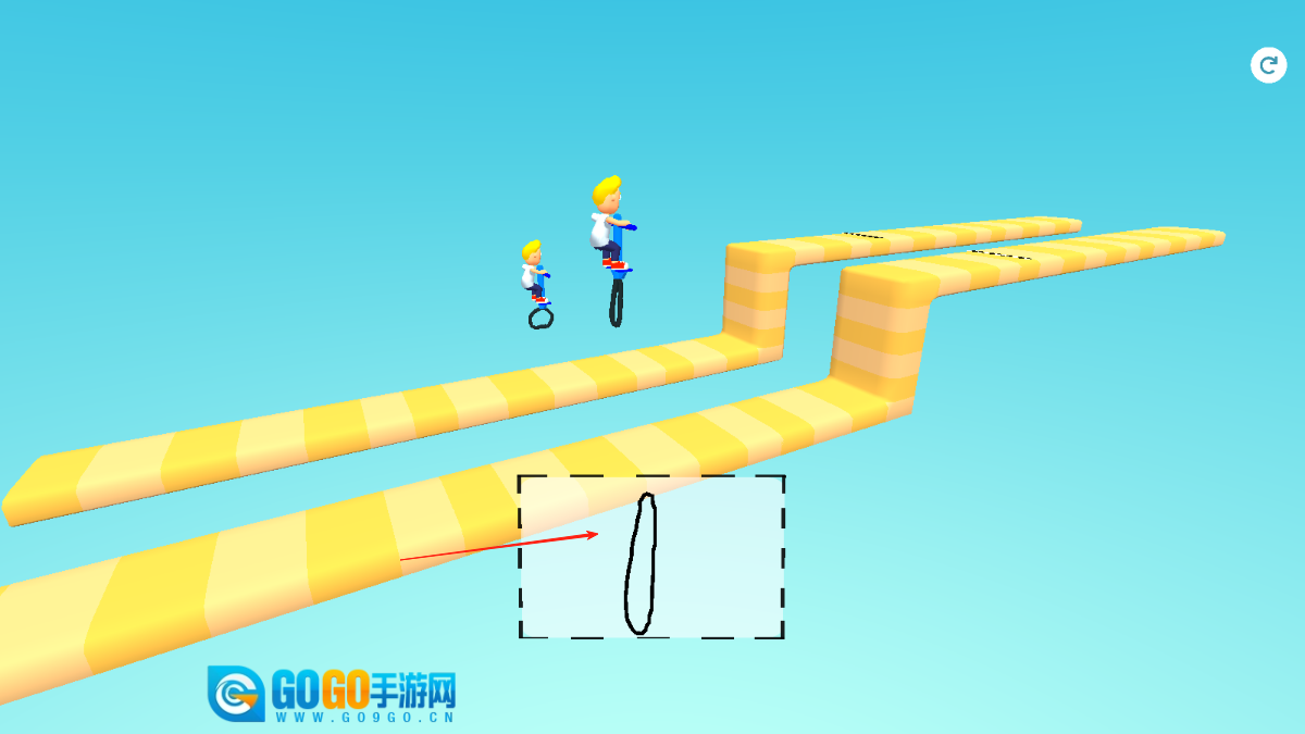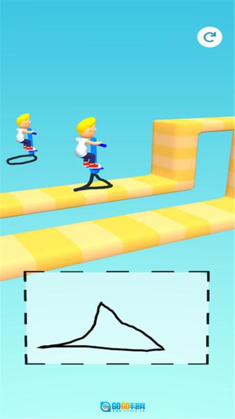 当遇到凹陷的障碍时,先画一条距离稍远的线让小人跳下去,接着再画一条较长的线来助力小人跳高;要是出现卡住的情况,就重新绘制线条进行调整。