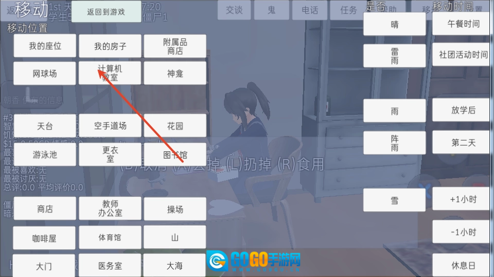 5、接下来你就能前往天台、空手道场、花园等场景开启冒险之旅啦;
