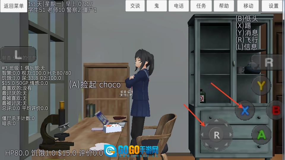 4、能看到右手轮盘可用于控制角色移动,A\B\X\Y键则能对人物下达具体指令;