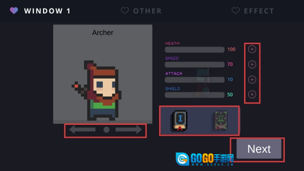 1、战斗开始前,你可以挑选角色职业,也能借助宝石提升基础属性值,选好一本增益书后,点击【Next】按钮。