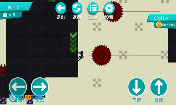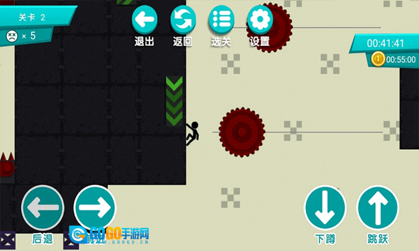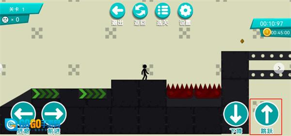 4、如下图所示,当遇到障碍物时,玩家可借助跳跃按钮来越过障碍。