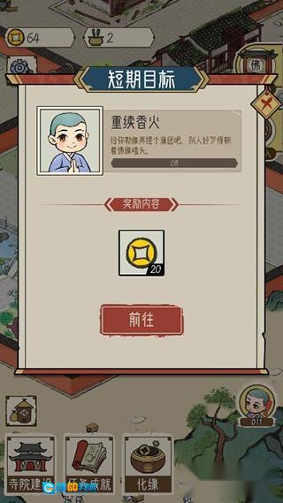 4、玩家需维持业务的良好运营状态,以此逐步扩建寺庙规模,积累自身实力。