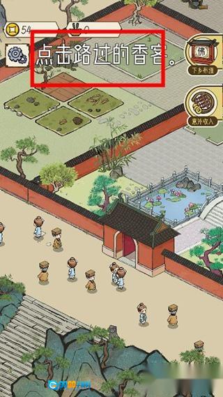 3、需要先点击路过的香客,把他们引入自己的寺庙;