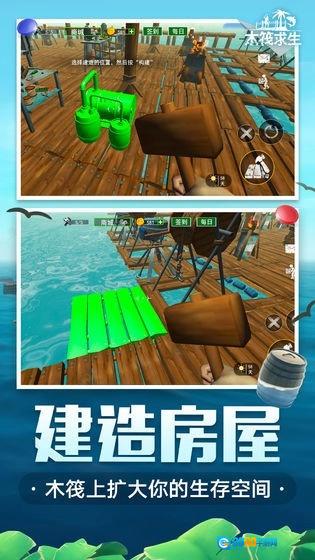 3、获取资源,将你的木筏打形成海上最强大的堡垒。