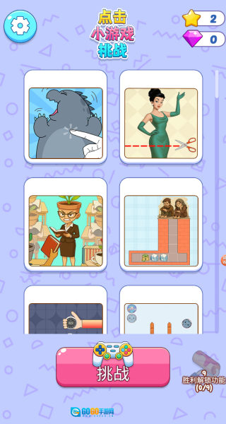 1、进入游戏后,你可以浏览各种各样的小游戏玩法,挑选第一个小游戏来开启挑战,这样就能解锁后续更多的功能。