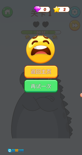 4、若闯关失败,可选择再次尝试重新挑战,也可以点击返回主页去切换其他小游戏。