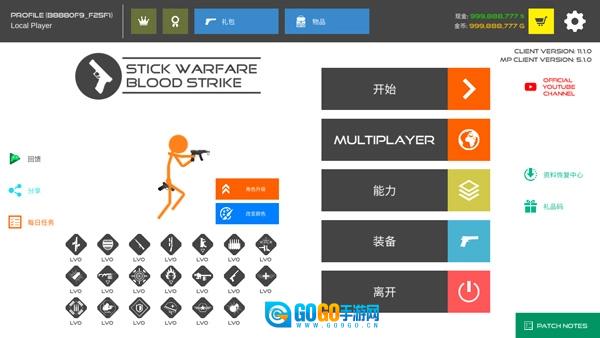 3、完成新手教程后点击“开始”就能进入战斗环节,若选择多人模式,需点击火柴人战争复仇打击联机版的“MULTIPLAYER”选项。