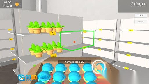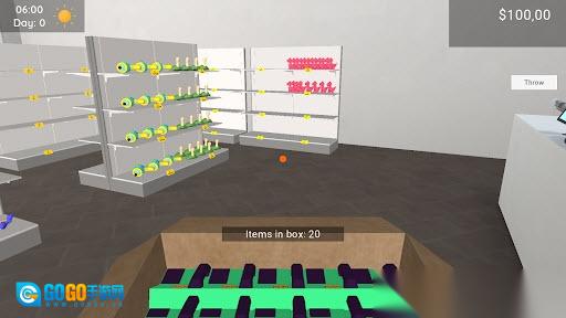 1、启动游戏后进入超市场景,玩家会看到店内货架上空空如也,所以首要任务就是给玩具进行上架摆放。