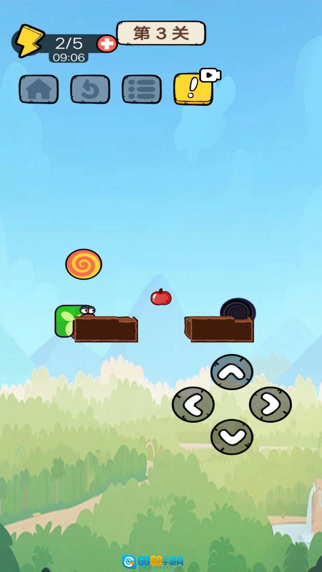 2、借助灵活的操作技巧,探寻吞食苹果的最佳路径,同时尽量让身体长度得以延长;