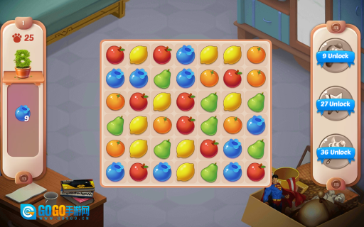 通过关卡得到的星星,能够用来解锁房子的其他区域、修复破损的物品以及添置新的物件等。